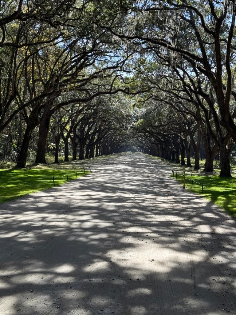 Thursday started the day at Wormsloe. Founded by Noble Jones a member of the original 114 settlers brought to Savannah by Oglethorpe in 1733 to create a new colony which would serve as a buffer between Spanish Florida and South Carolina. Oglethorpe had investigated England’s debtor prisons and became very disillusioned by what he found. He obtained a charter from the king and brought mostly unemployed debtors to his new colony. The idealistic Oglethorpe banned slavery and alcohol, gave each colonist 50 acres and intended a kind of utopian community. Another 400 settlers, again mostly debtors, came in 1733 two years after the first group, but despite the eventual success of the new colony, Oglethorpe’s vision for it was a failure. Here is the image of Wormsloe everyone remembers. The over one mile long entrance to Wormsloe is lined by hundreds of live oaks planted in about 1891?. Each is 33 feet apart, and 66 feet opposite each other across the lane.