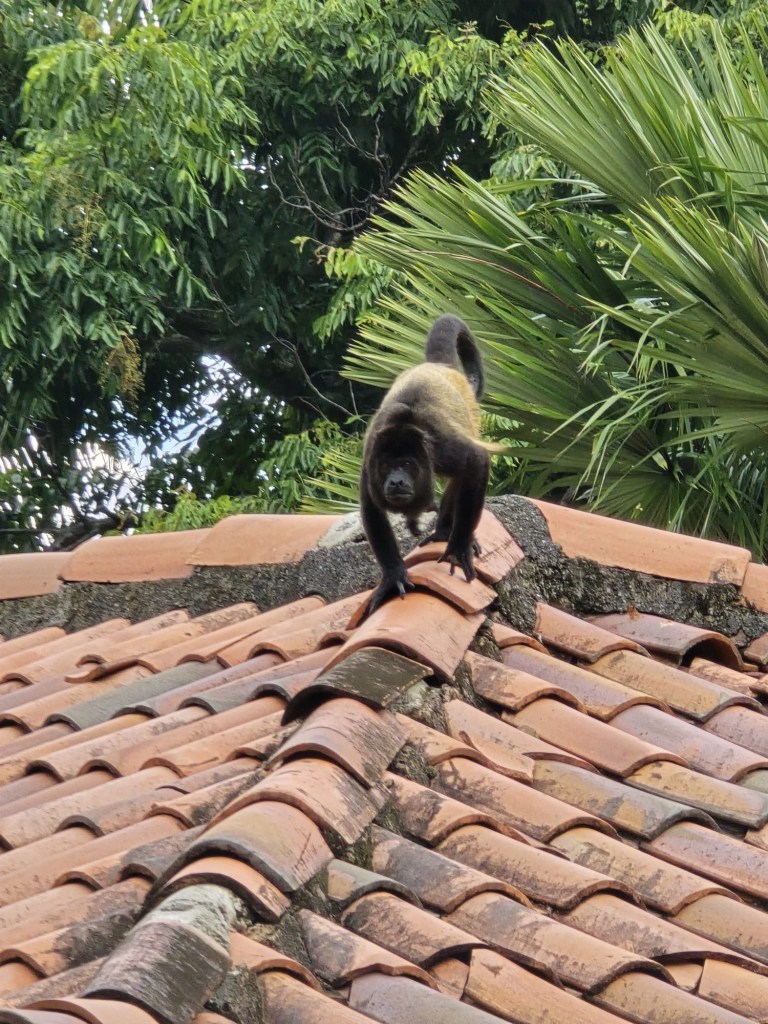 July 2 through July 5 was next to the beach at Parador Resort and Spa. The climate was very different. While it was cool, almost cold at night in the central mountains, it was hot and humid at sea level. But not uncomfortable, actually not as bad as back home. Parador sits on a small hill above the ocean near the town of Quepas. We rented the “casita”, a three bedroom house in the center of the property. Monkeys, Howler and White-faced Capuchins, used our roof to partially cross over the path guests and staff use to go between the main building, pool and restaurants to the bulk of the rooms. There are trails through the forest that surrounds the hotel but wildlife watching was best done from buildings that allowed looking down on the canopy. Monkeys, sloths, macaws and toucans were easy to see. I walked the road leading to and from the resort and saw numerous other tropical birds but only added 7 to my life list. Most I had seen a few years before in Columbia.