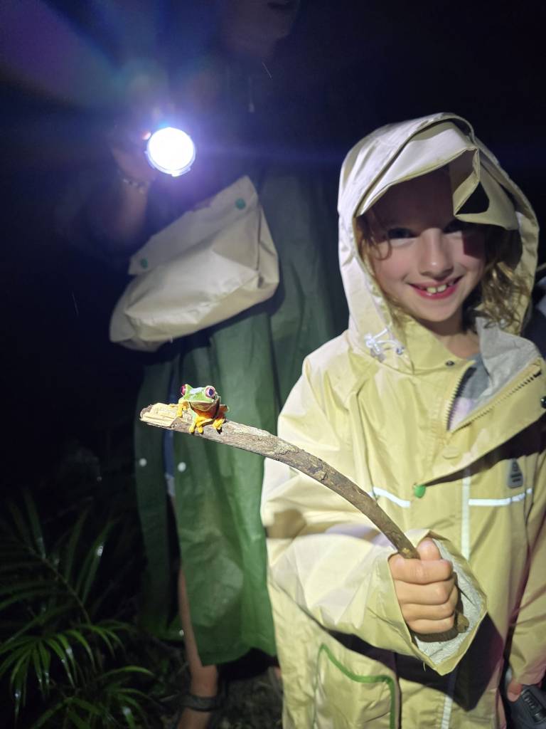 The only tour taken at Parador was the animals of the night tour (in the rain) Margaret with the red eyed tree frog, symbol of Costa Rica