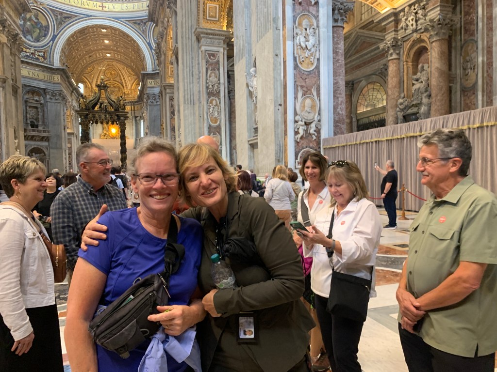 Our guide saying good bye in St Peter’s. The wooden structure in the back is directly over the tomb of St Peter. Six members of our tour are here.