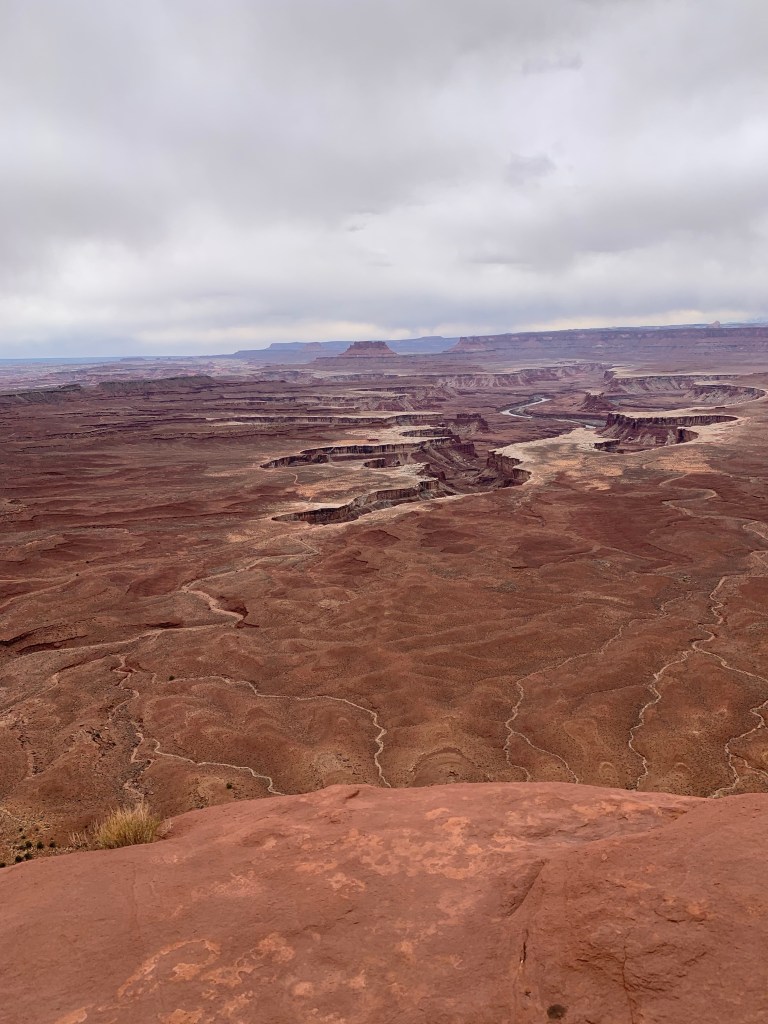 I’m standing about 10 feet from the edge. If it looks like a wasteland or moonscape to you, it did to us too. The river turns left and meets the Colorado. There is another vista point overlooking the confluence, it looks just like this picture but you can’t see either river, they are too deep in the canyon. The La Sal mountains could be seen from Canyonlands.