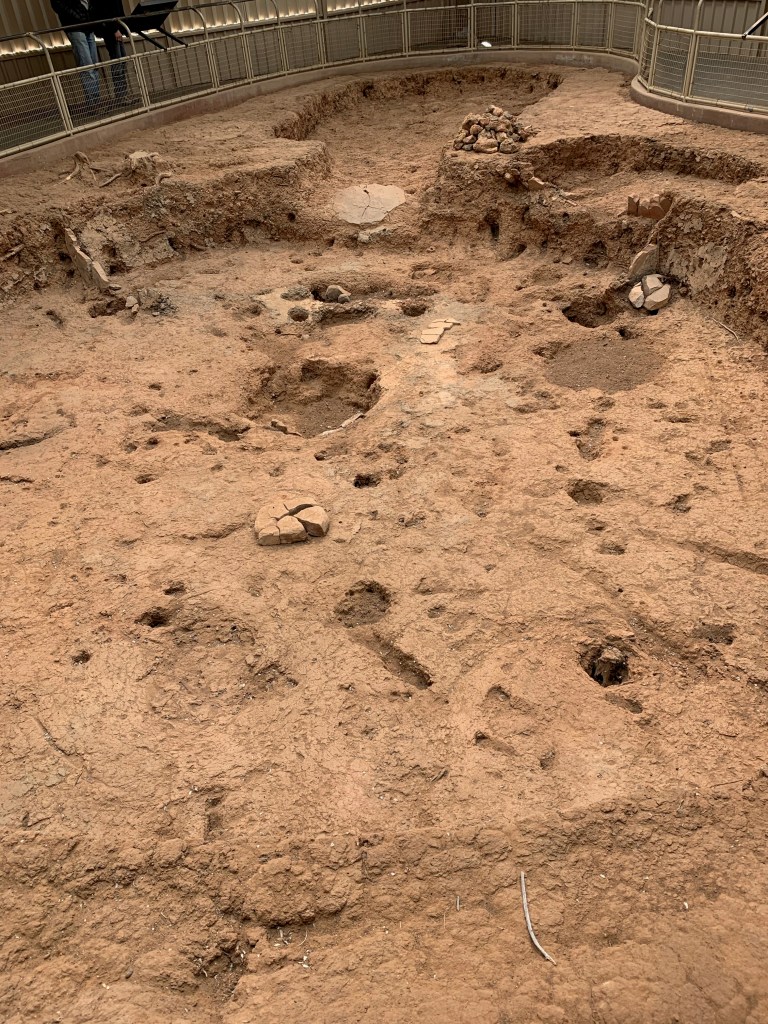 This one was built around 700 AD. It’s 2.5 feet deep and would have been surrounded by posts with wattle and daub between them, like we see at Angel Mounds. The oval at the top of the picture was the entry way, the rectangular extension of the pit at 2:00 was essentially the pantry. Grain, dried berries and nuts, and other stable goods were stores there. That’s the actual pit with very little excavation. Later pit houses were deeper and slightly larger. The last stage of their construction was the cliff dwellings. No one understands why they moved from pit houses on top of the mesa to cliff dwellings or why they eventually abandoned them.