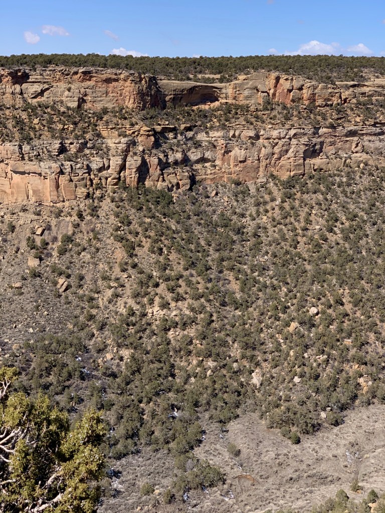 To the left and right is a shear vertical cliff. The canyon below is extremely rugged and steep. Another cliff dwelling. Imagine getting to it, imagine small children living there.