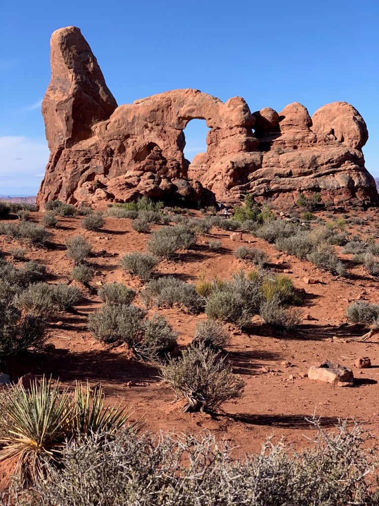We got to Arches early, about 8:15 AM. There is basically one road, head into the park on it and at the end of the road turn around and head out. Three or four short side roads exist. One of these is to the campground. We had planned to ‘boondocks’ tonight on BLM ground but a short drive into the campground led us to 3 open sites. Found the host and got one for the night. This despite a campground full sign and a no sites available message on recreation.gov. We’re two for two this way. Maybe our luck will hold at Canyonlands tomorrow.